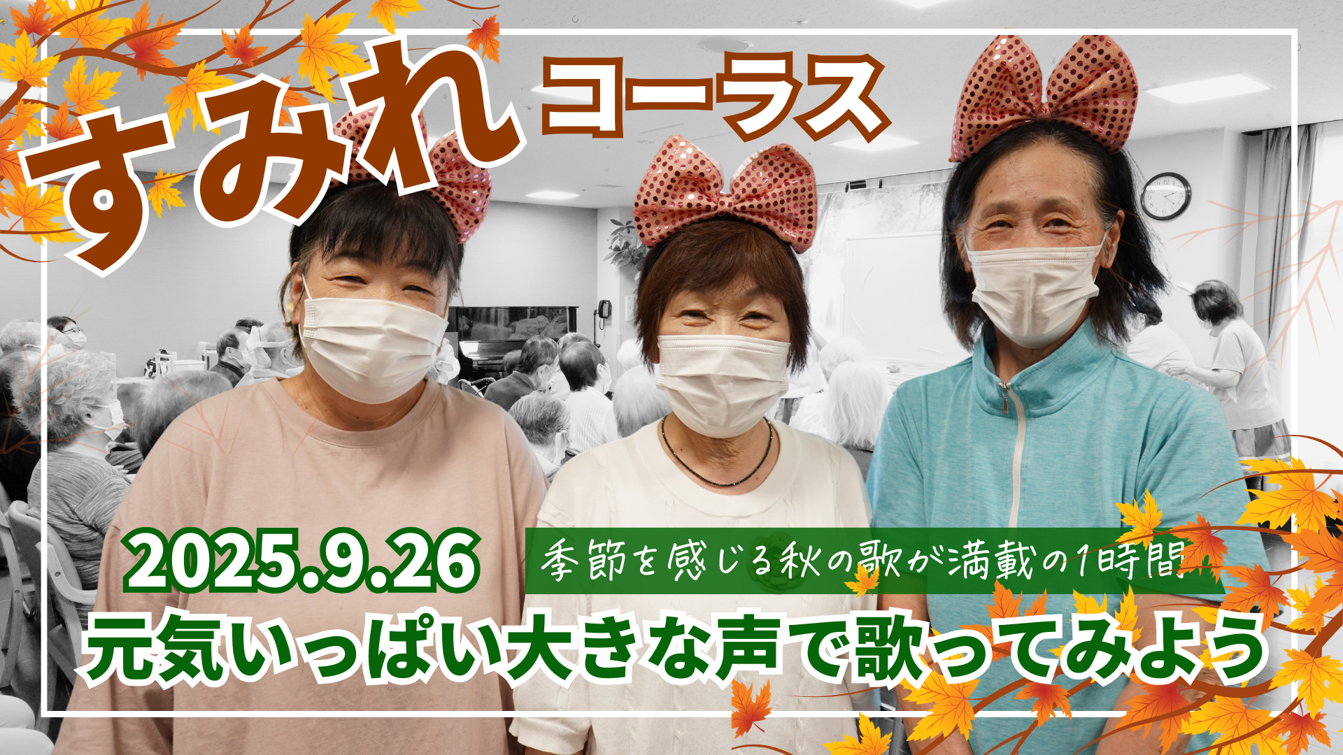 当日はメンバーのお一人が不在とのことでしたが、いつもと変わらない澄んだ歌声と明るさで、利用者様を笑顔にしてくださいました。秋を感じさせる懐かしい楽曲が披露され、利用者様も一緒に大きな声で歌い、会場は温かい一体感に包まれました 。